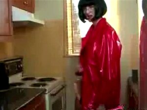 FFstockings - Madura masturbándose con StrapOn en la sala de hombres